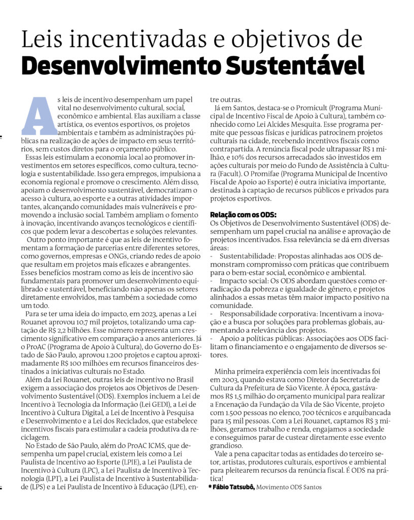 Vale pena capacitar todas as entidades do terceiro setor, artistas, produtores culturais, esportivos e ambiental para pleitearem recursos da renúncia fiscal. É ODS na prática!