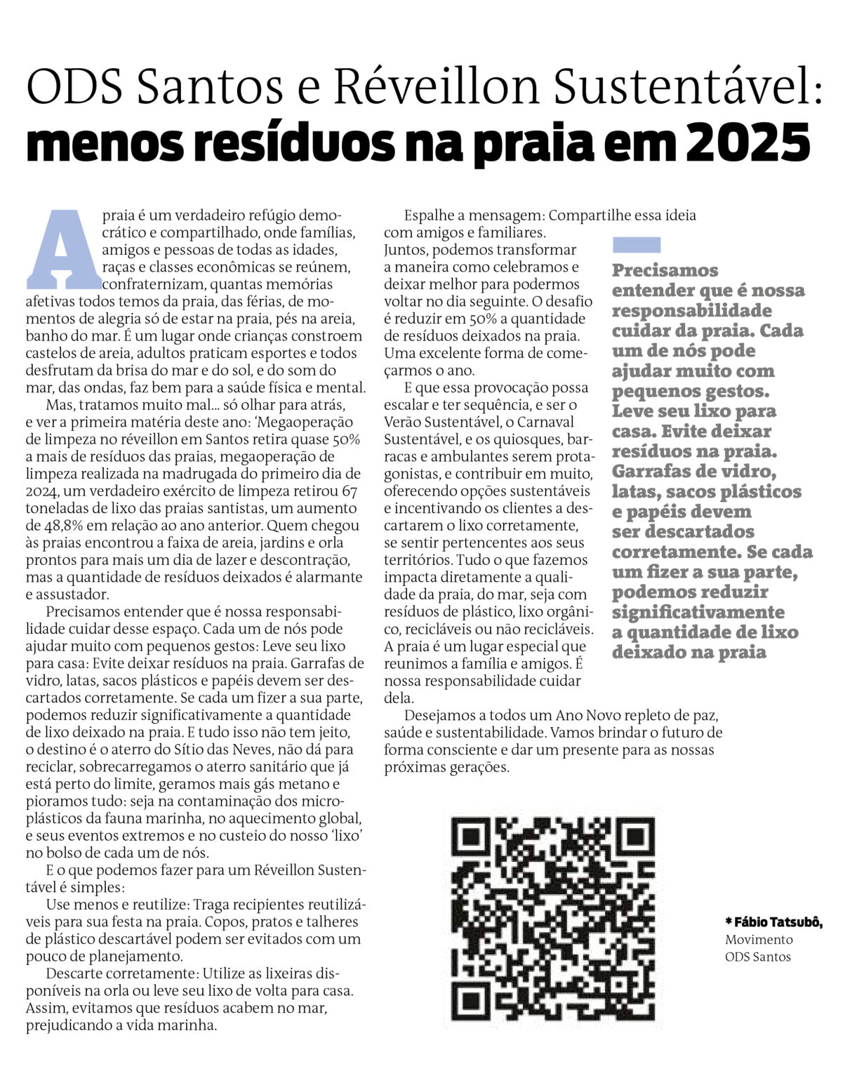 Espalhe a mensagem: Compartilhe essa ideia com amigos e familiares. Juntos, podemos transformar a maneira como celebramos e deixar melhor para podermos voltar no dia seguinte. O desafio é reduzir em 50% a quantidade de resíduos deixados na praia. Uma excelente forma de começarmos o ano.