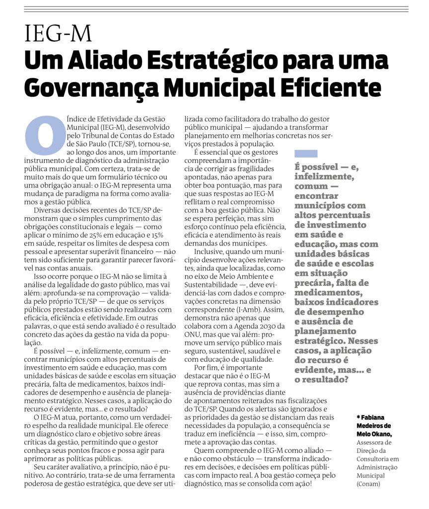 O Índice de Efetividade da Gestão Municipal (IEG-M), desenvolvido pelo Tribunal de Contas do Estado de São Paulo (TCE/SP), tornou-se, ao longo dos anos, um importante instrumento de diagnóstico da administração pública municipal. Com certeza, trata-se de muito mais do que um formulário técnico ou uma obrigação anual: o IEG-M representa uma mudança de paradigma na forma como avaliamos a gestão pública.
