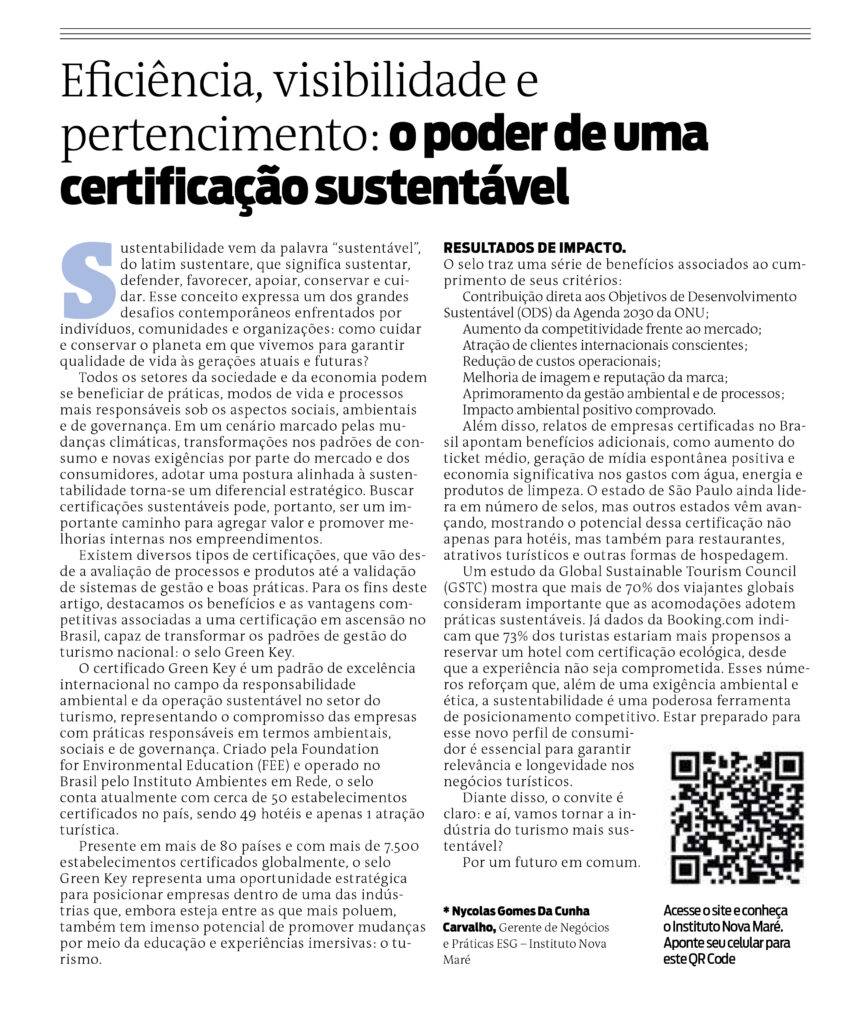 Existem diversos tipos de certificações, que vão desde a avaliação de processos e produtos até a validação de sistemas de gestão e boas práticas. Para os fins deste artigo, destacamos os benefícios e as vantagens competitivas associadas a uma certificação em ascensão no Brasil, capaz de transformar os padrões de gestão do turismo nacional: o selo Green Key.