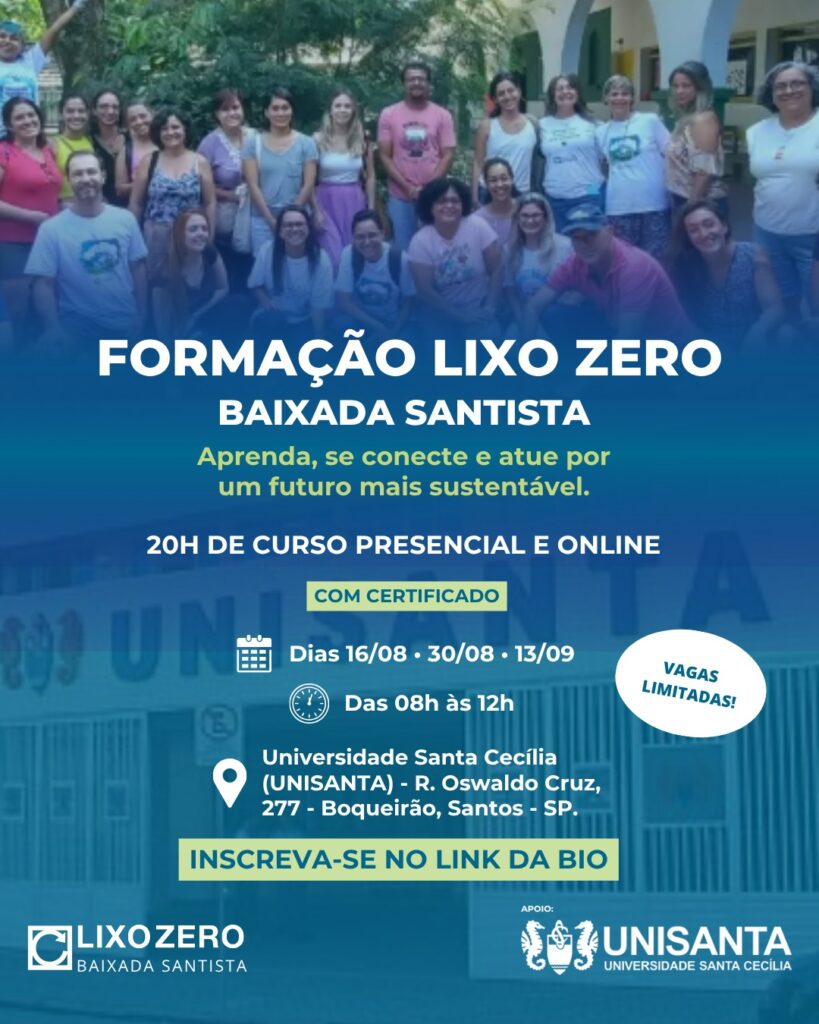 O Instituto Lixo Zero Baixada Santista está com inscrições abertas para mais uma edição da Formação Lixo Zero, voltada a todas as pessoas interessadas em sustentabilidade, gestão de resíduos e na construção de uma carreira na área ambiental.