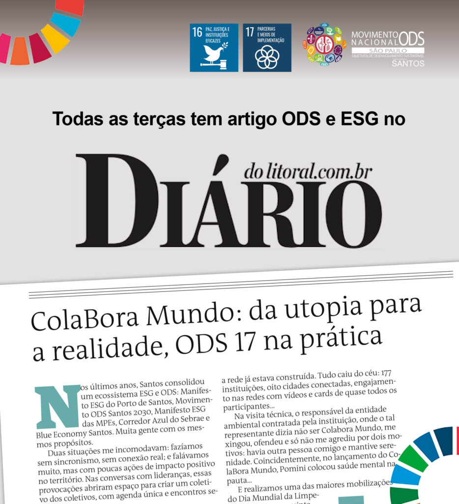 Nos últimos anos, Santos consolidou um ecossistema ESG e ODS: Manifesto ESG do Porto de Santos, Movimento ODS Santos 2030, Manifesto ESG das MPEs, Corredor Azul do Sebrae e Blue Economy Santos. Muita gente com os mesmos propósitos.