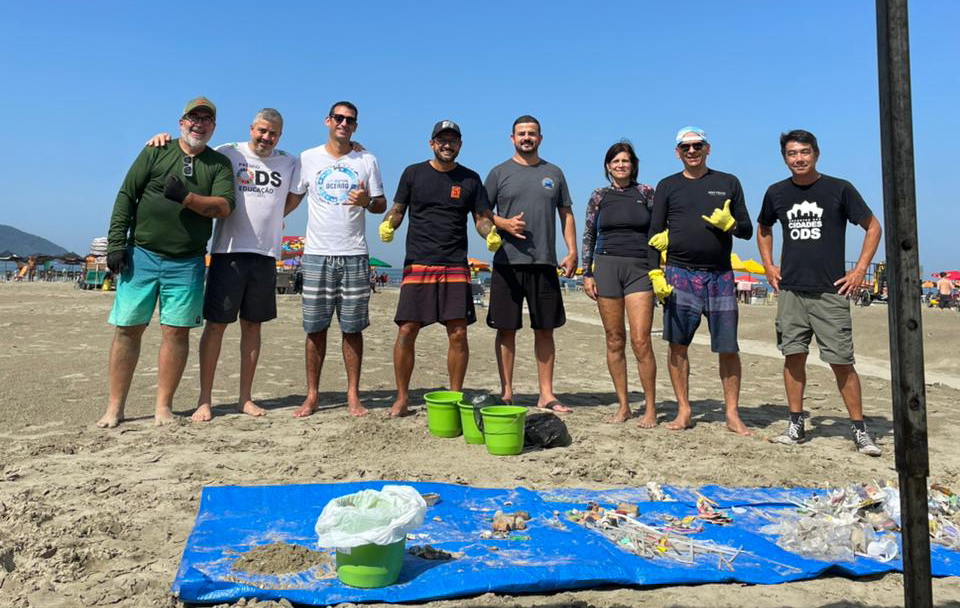Clube 013 Longboard promove mutirão de limpeza na faixa de areia entre os canais 1 e 2 em Santos